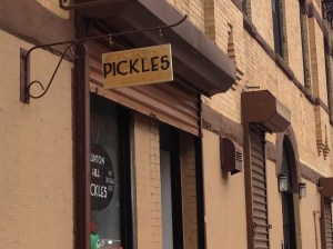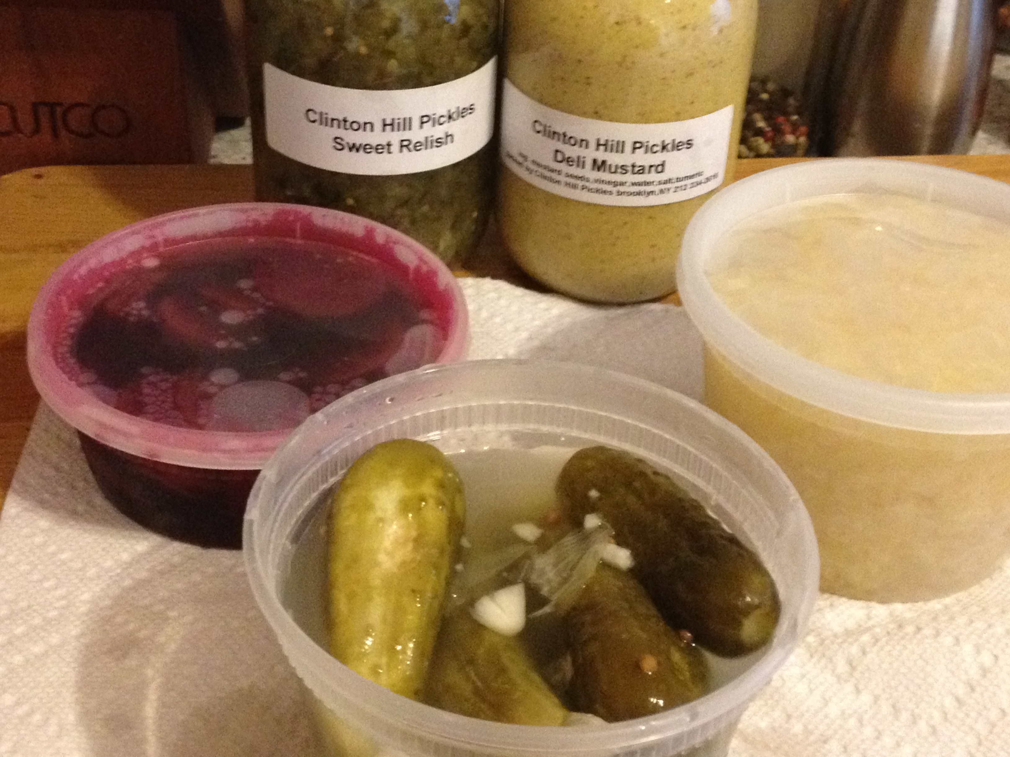 Clinton Hill Pickles is a tiny shop at 431 Classon Avenue. The proprietor, Pat is surrounded by barrel after barrel of pickles, pickled beets, sauerkraut and other wonderful products that she either makes herself or has other artisans make for her. She greets you with a smile, offers you a pickle to taste and remembers who you are. You see, Pat has been in the pickle business almost all of her life, some of you may know about the lower east side of Manhattan and the wonderful array of foods that you can purchase from pickles to bialy’s to knishes. Pat ran the family pickle business, the famous Guss’ Pickles on Orchard Street until she had to close shop, so she decided to make the move to Brooklyn. The pickles and pickled vegetables are in barrels, reminiscent of old times, I always think of the movie “Crossing Delancey” and the pickle man (great movie!). I remember the shop on the lower east side, it was so charming and I was happy to find her so close to where I live. After looking in each barrel, containing sour pickles, half sours, hot pickles, fresh pickles (very crisp), it was hard to decide, but I finally chose some sour pickles, beets, sauerkraut, homemade sweet pickle relish and some real deli mustard. I can’t believe how good it all is, each item home made no additives and everything is made with love and care.