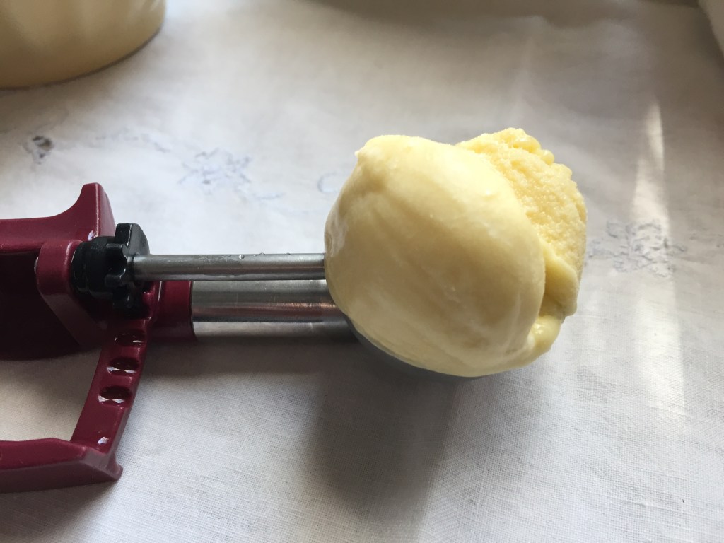 I am going to make a recommendation, I plan on making this again because it really is good but I will make a couple of changes. I will increase the milk to 1 cup and the water to 1/2 cup leaving everything else the same, the olive oil doesn’t freeze and makes the gelato very soft, adding additional liquid IMHO will help it to be more scoopable and stay frozen a little longer. The gelato melts very quickly, trying to get a photo with it in the profiterole was challenging and I think that adding more milk and water will help.