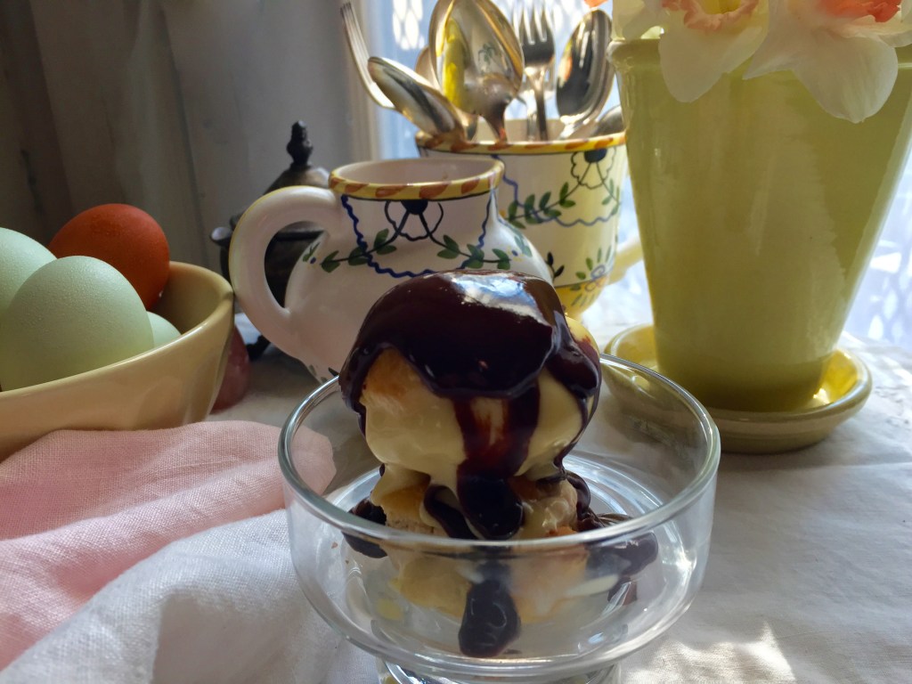 First of all I can’t believe how quickly time is whizzing by, already Easter and before you know it we will be enjoying summer with the warm weather and great produce. If it were up to me I would skip the warm weather and just go for the produce. For Easter I decided to have very good friends over for dinner and wanted to make a special meal. Since I love dessert I am going to post the recipe for the dessert before I post dinner, backwards maybe but I’ve always been someone who loves dessert especially when it involves ice cream. A few months back I saw a recipe on Johnny’s blog Kitsch n Flavors for profiteroles. I could have sworn I saved it to Evernote but could not find it, Johnny’s blog is now private and I couldn’t access the recipe so I used one from Saveur which I have to say turned out great. Choux pastry may sound and look imposing but it couldn’t be easier really. It takes literally minutes to prepare, bakes in no time at all and the resulting pastry is light as air and so delicious.