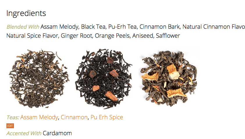 Now for the Chai, first let me say it has been hot out and as a general rule I only drink iced coffee or tea when it’s this hot, even my morning cup of coffee has ice in it. I saw that there is a short window this week where the temps are lower, in the mid 70’s and a cup of hot tea will be fine especially at night when it is getting down in the low 60’s.  Adagio has this really cool feature where you can create your own blend of tea it arrives in a tin which you customize with a photo or logo. I created a chai tea that is of my own design and geared to my taste, no cloves, I seriously dislike cloves and don’t even have any in my spice cabinet. See below the teas and spices that I chose.