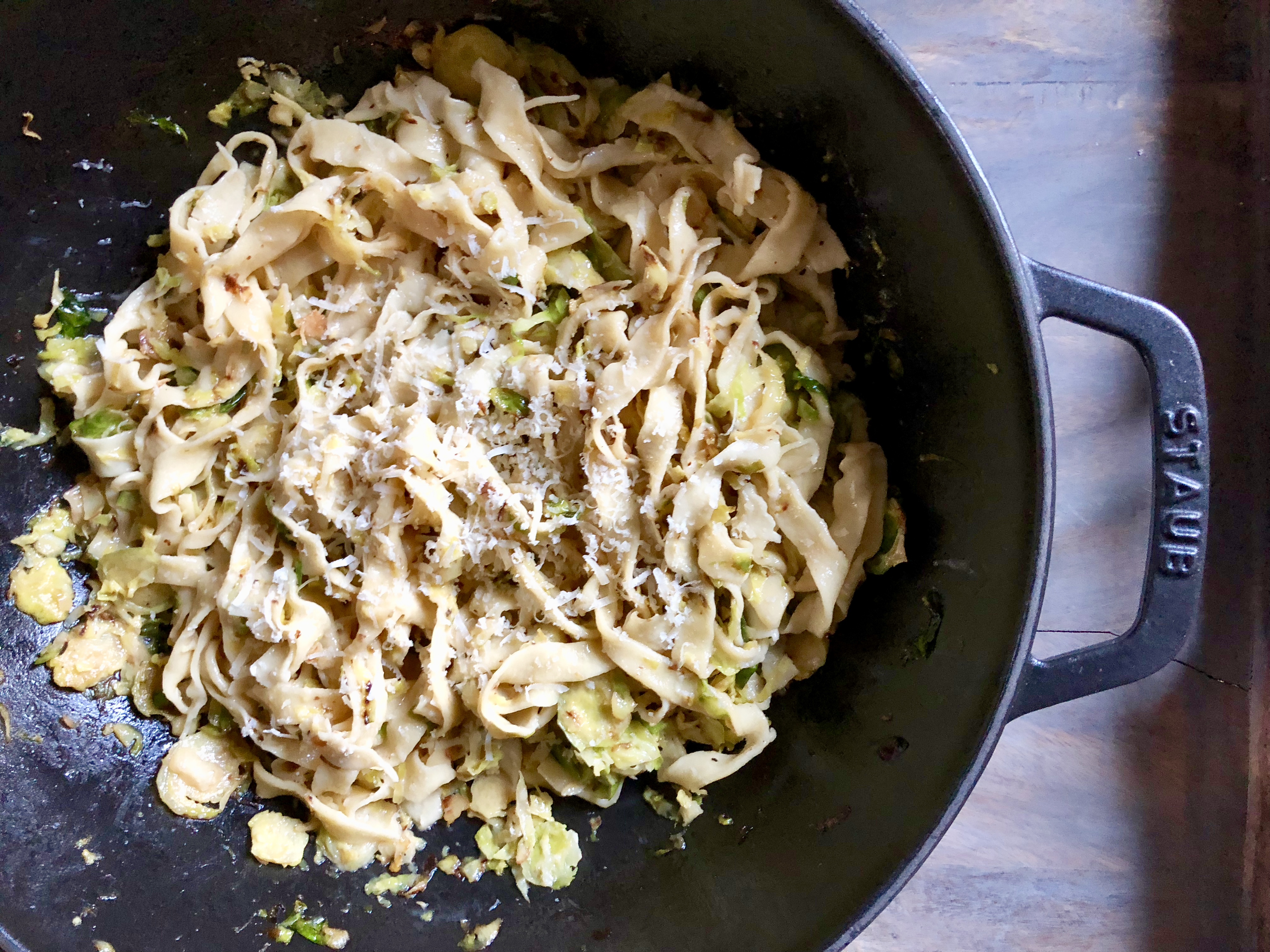 Smash the garlic cloves with 1/2 tsp of the salt either in mortar and pestle or using a chefs knife on a cutting board (you want the garlic to be a paste). Mix the soft butter with garlic paste, lemon zest, thyme leaves, sage and remaining 1 1/2 tsp salt. Mix to combine, roll into a log, wrap in plastic wrap and parchment paper and store in refrigerator until ready to use. It’s delicious on turkey or chicken or on roasted vegetables. I roasted Brussels sprouts, potatoes, onions and carrots.